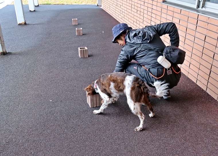 定期訓練会のトレーニングの際にだけ、高度な事を要求しても犬の理解は深まりません。オーナーハンドラーの特権として、日々の生活の中からルールに基づいたスモールステップアップトレーニングを行う事で、安定した作業ができるペアの成長へとつながります。
