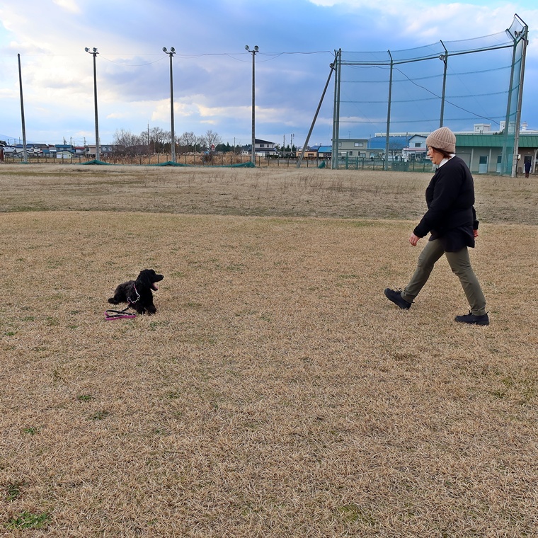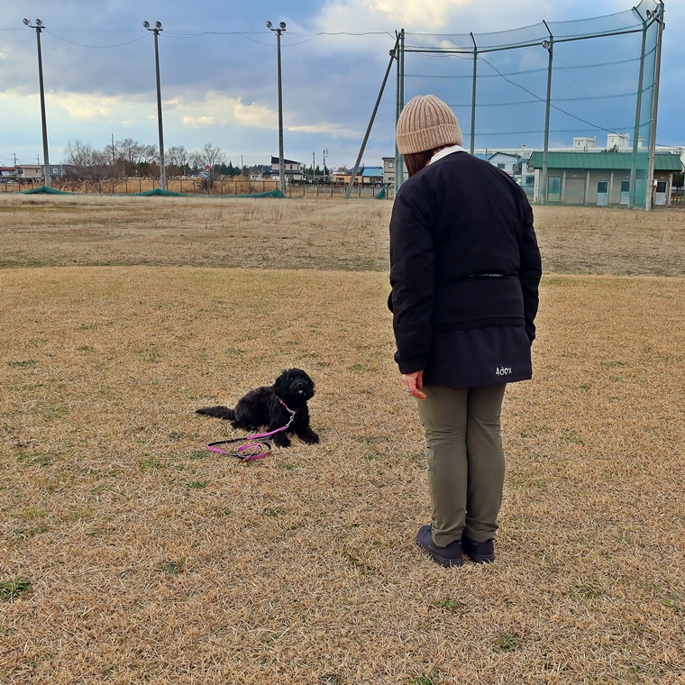 初日よりも2日目の方が確実に犬の理解が進んだことが分かるトレーニングとなりました。初日は風も強くトレーニング環境としては少し難しくなりました。2日目は雨が降りましたが、湿度が高く風も穏やかな事もありトレーニング環境としては安定したセッションとなりました。共通した課題としては、犬は素直に楽しくステップアップしますが、ハンドラーのロングリードのハンドリングは、初めての経験となったこともあり、手惑うことで犬の意欲が低下してしまったり、ハンドラーを気にしてしまう場面が見られました。ハンドラースキルの向上を目指していきましょう。