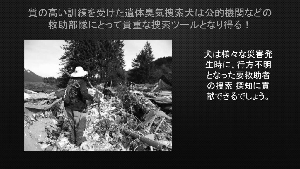 日本国内においても、遺体臭気捜索犬の必要性と需要は年々高まっています。