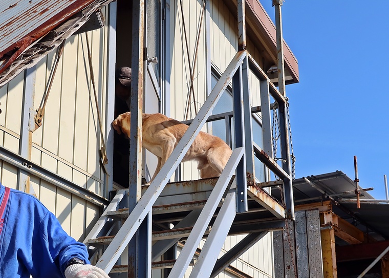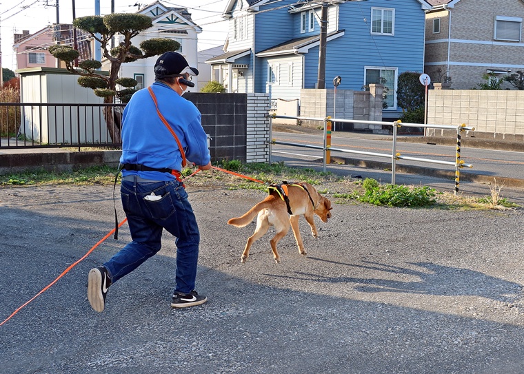 ハンドラーは屈折やオープンスペースにおいて、犬が示すネガティブ反応の読み取りは、捜索精度に直結する重要な要素であることから、安定したハンドリングの確立を目指していきたいと考えます。